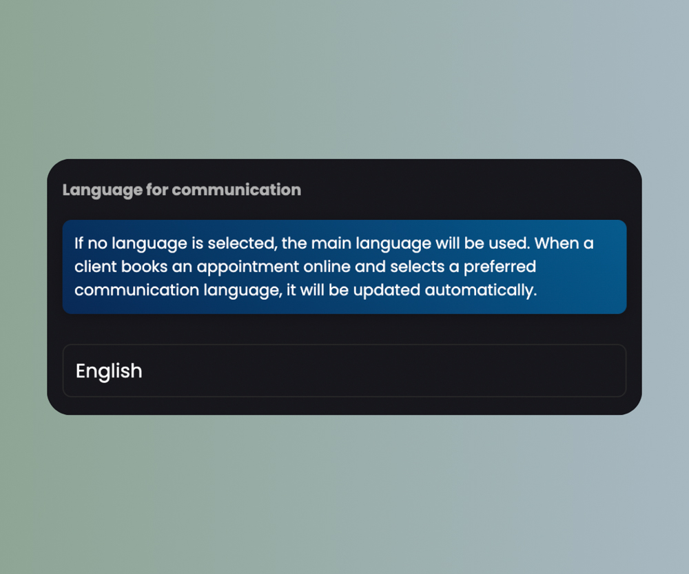 When you add additional languages for communication, your booking widget (and webstore widget if enabled) will be available in multiple languages, so every client can easily book an appointment. After booking, messages like confirmations and reminders are automatically sent in the client’s preferred language.