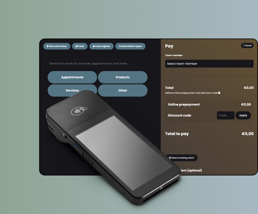Always have a clear view of what’s left to pay. If the client made a payment online, that amount is automatically shown and deducted from the total in the POS system, so you know exactly what remains outstanding.